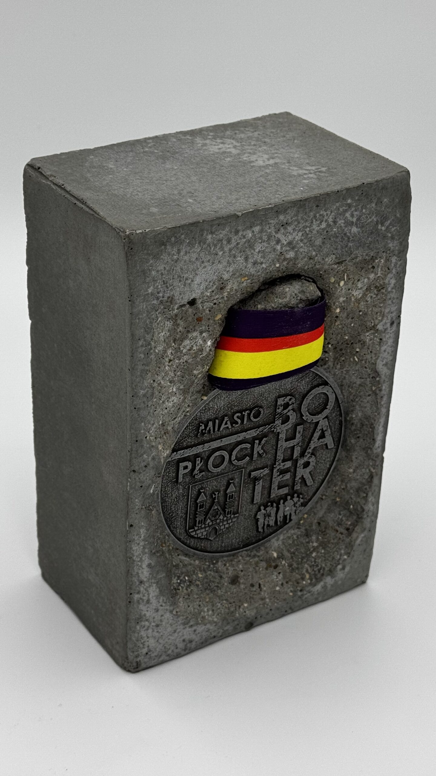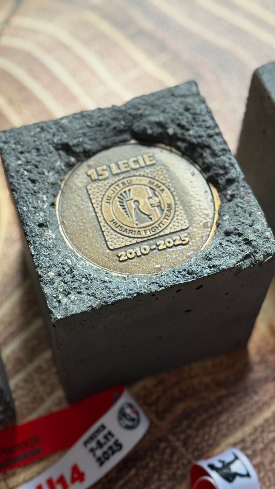 Beton Statuetki z betonu Statuetki wykonana z betonu architektonicznego w połączeniu z dodatkowymi elementami jak medal, tabliczka itp. Wymiary do ustalenia z klientem. Produkt wykonywany na indywidualne zamówienie klienta.